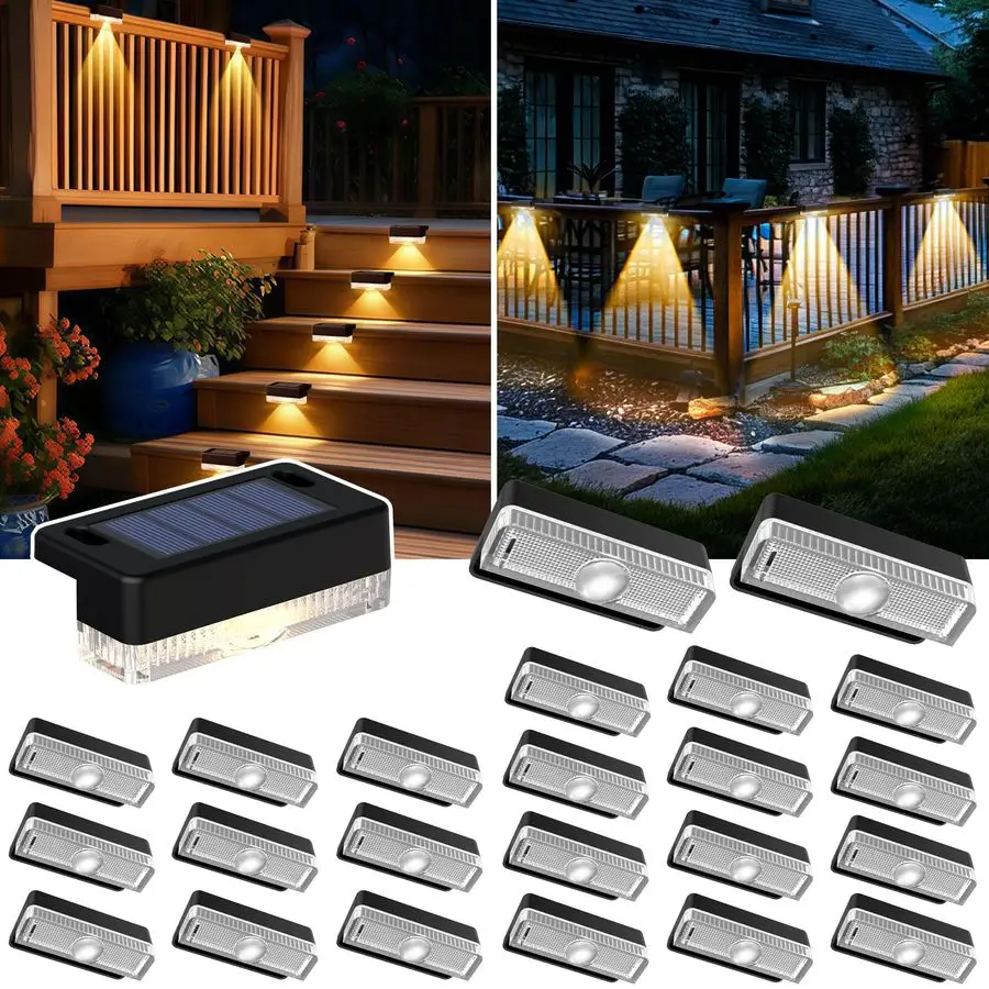 Luces Solares para Terraza, 24 Unidades, Luces LED para Escalones, Impermeables, para Terraza, Escaleras, Vallas, Paredes, Patio, Jardín