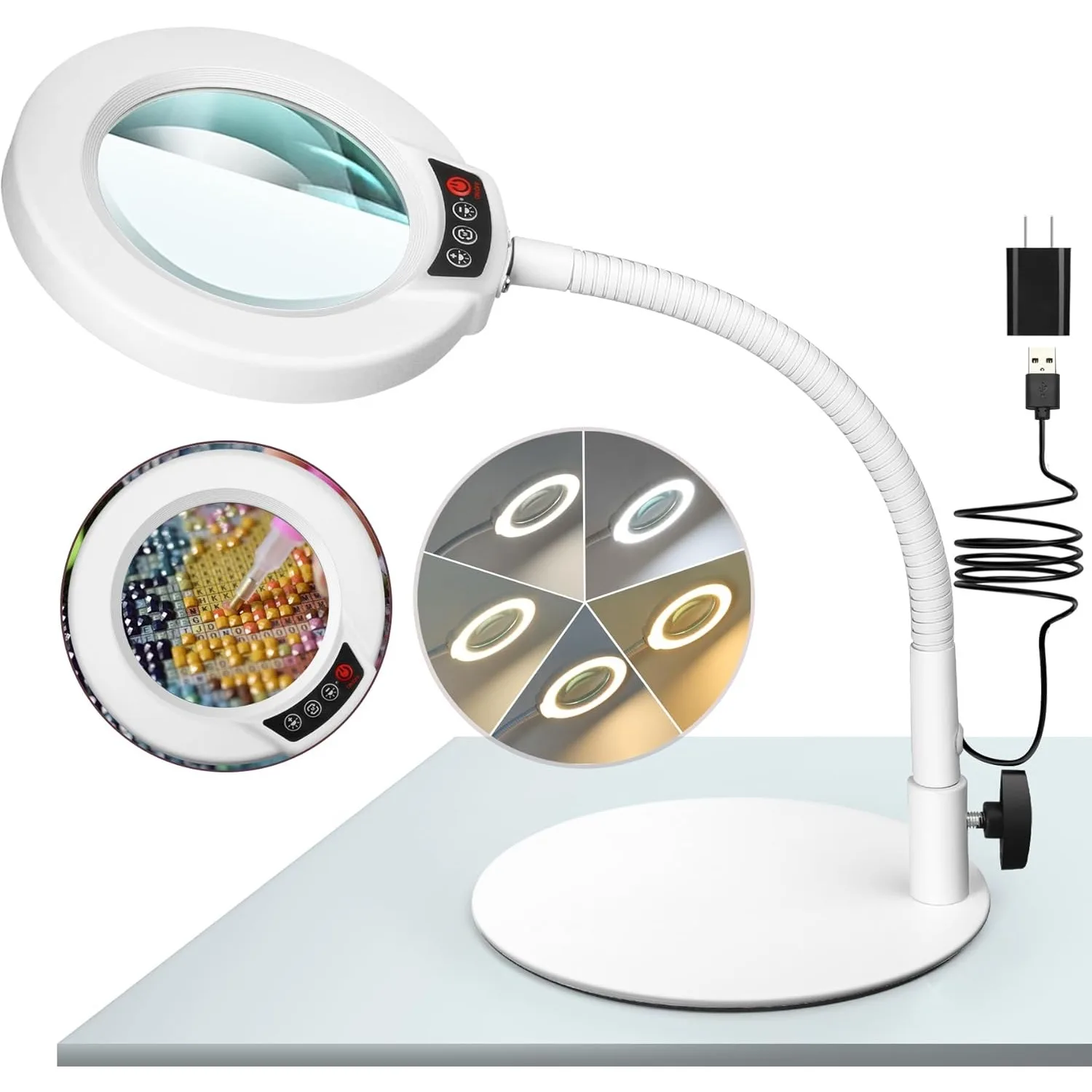 Lupa de cuello de cisne flexible manos libres con luz para manualidades, hobby, pintura, trabajo cercano – Blanco