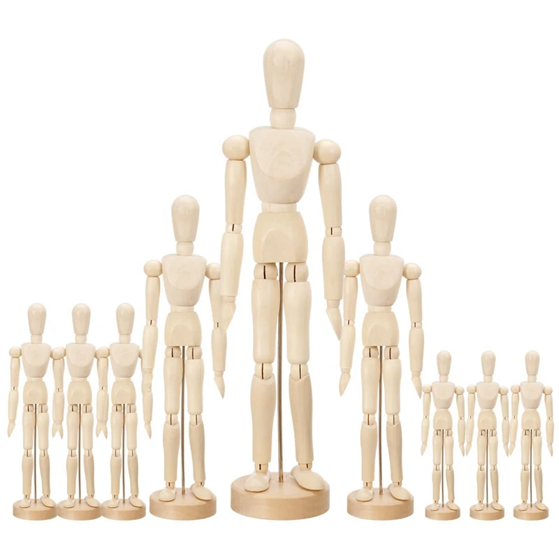 Maniquí de artista de 9 Uds., maniquí de madera, dibujo, figura móvil, modelo con soporte, maniquí articulado Flexible, fácil instalación