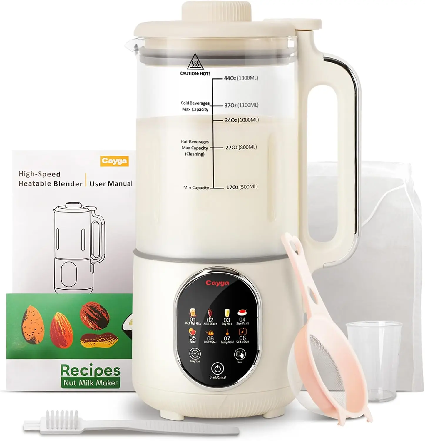 Máquina casera para hacer leche de nueces de aleación de titanio de 44oz, máquina para hacer leche de soja, almendras caseras, avena, jugo, coco para bebidas a base de plantas w