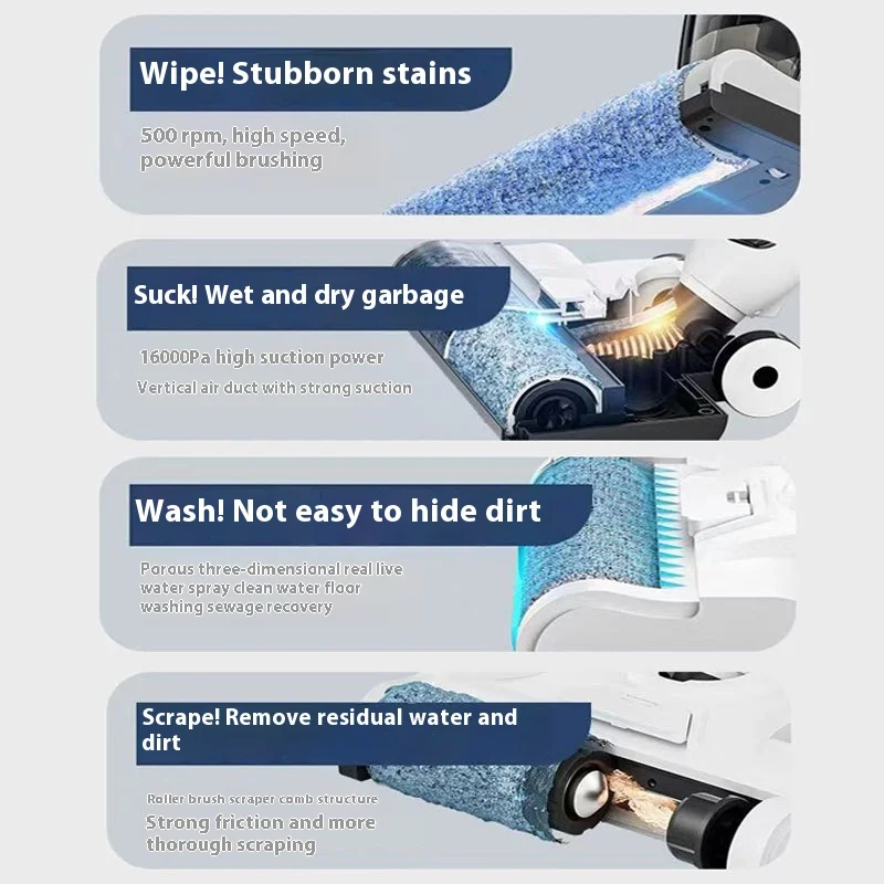 Máquina de limpieza de suelo, fregona al vacío combinada, totalmente automática, inteligente, inalámbrica, de mano, manos libres, máquina de barrido y fregado perezoso