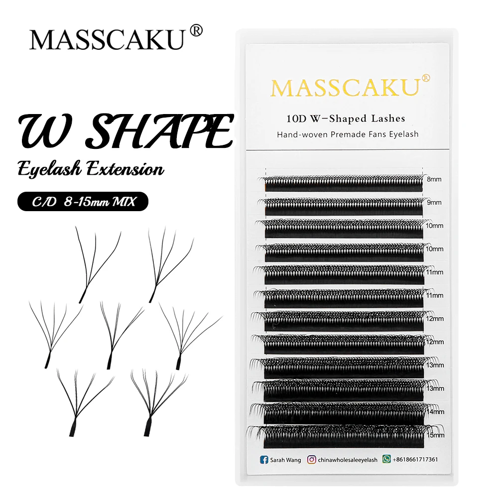 MASSCAKU 3D/4D/5D/6D/7D/8D/10D negro mate forma de W extensión de pestañas trébol prefabricado Fans pestañas individuales herramientas de maquillaje de visón falso