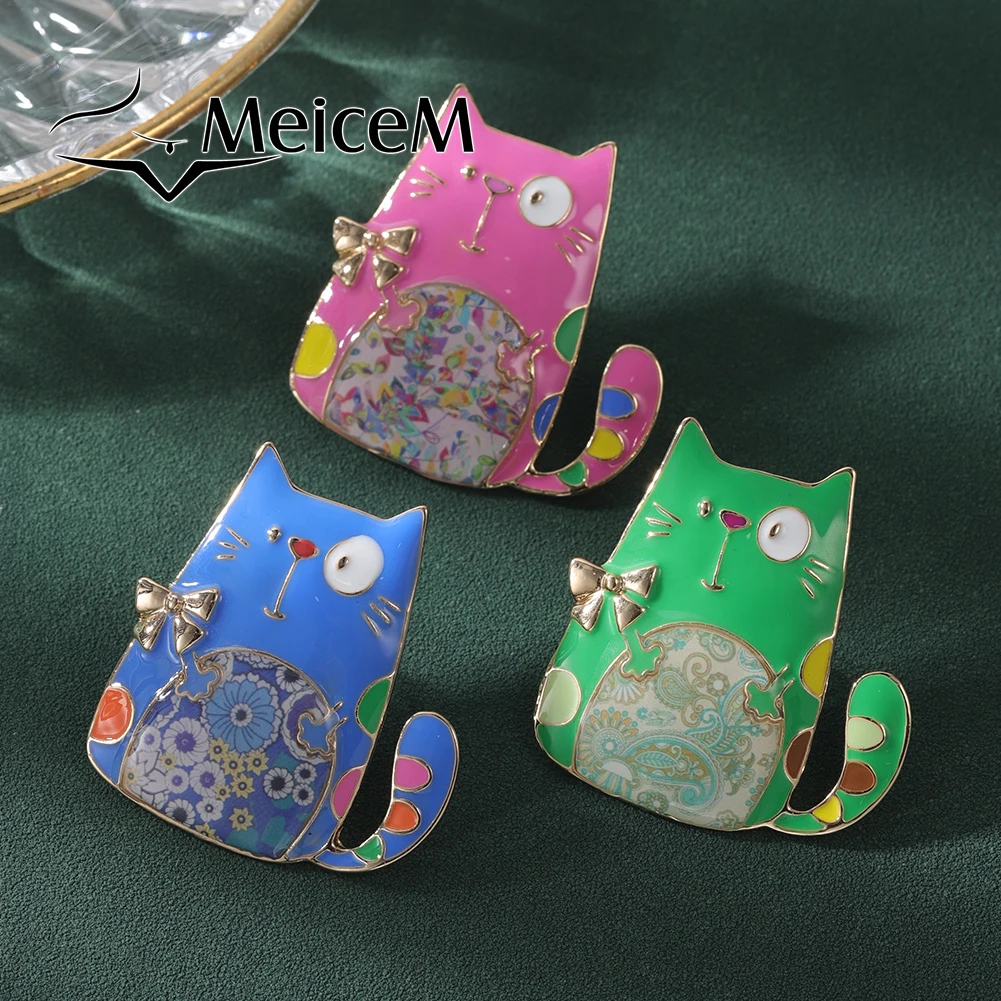 Meicem-broche de gato de dibujos animados para mujer y niña, alfiler de solapa de moda, broches de esmalte de diseñador, 2024