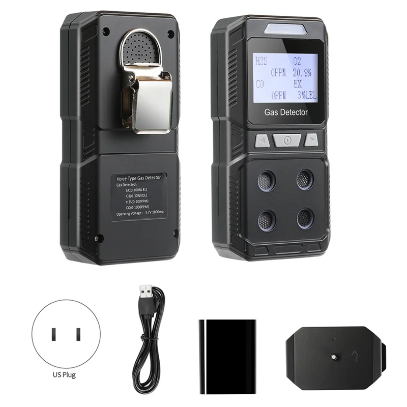 Mejor selección portátil 4 Detector de Gas analizador de Detector de Gas tóxico y Combustible alta precisión EX O2 H2S CO enchufe estadounidense