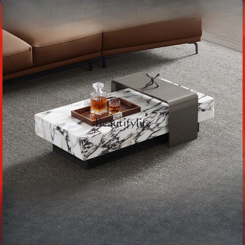 Mesa de centro de mármol natural de lujo, luz Italiana Moderna, sala de estar, mesa de centro