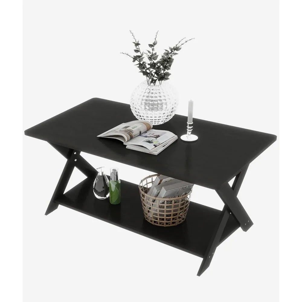 Mesa de centro moderna con estante de almacenamiento, mesas de té rectangulares simples para sala de estar, dormitorio, hogar, oficina, roble negro