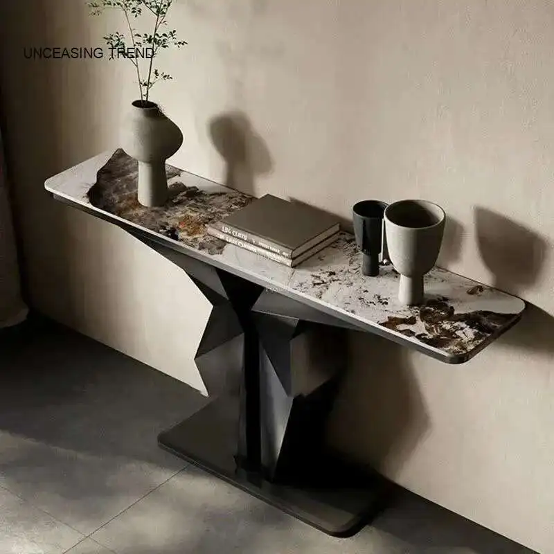Mesas de consola de pizarra de lujo con luz nórdica, muebles italianos para sala de estar, pared del pasillo del hogar, mesa de porche de hierro, consola de entrada