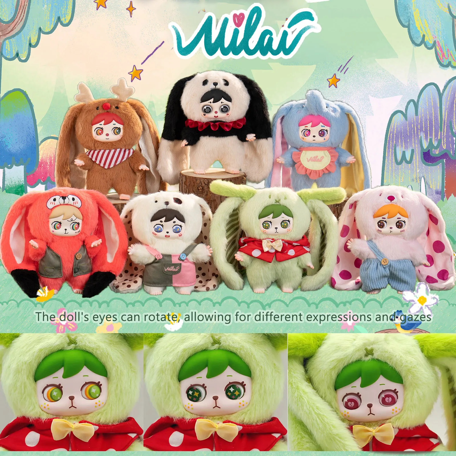 MILAI vinilo cara conejo bebé bosque animales muñeca orejas largas peluche juguete colección con ojos giratorios niños regalos de cumpleaños