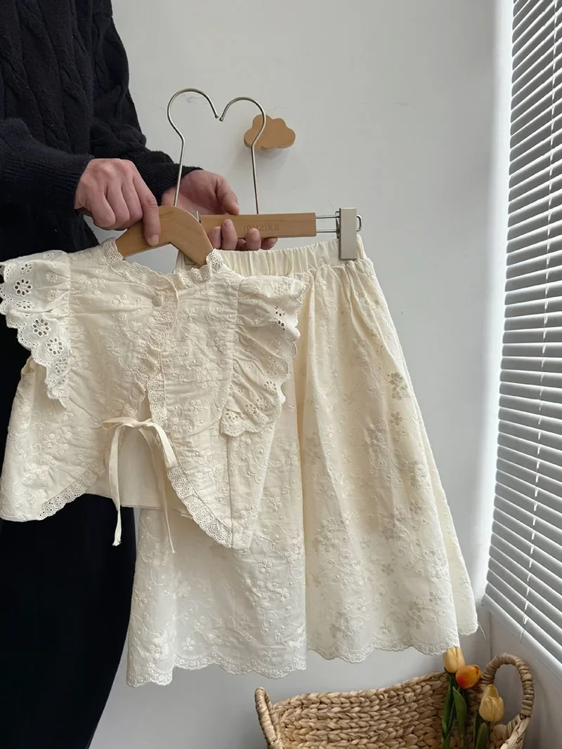 MILANCEL, nuevo conjunto de ropa de verano para niños, chaleco sin mangas de encaje bonito + falda, traje de flores bordadas para niñas