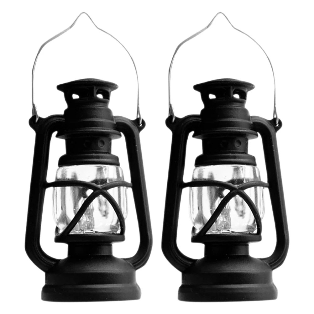Mini lámpara de queroseno Retro para casa de muñecas, farol de Material plástico, iluminación LED, decoración artesanal, microadorno de paisaje, escena en miniatura, 2 uds.