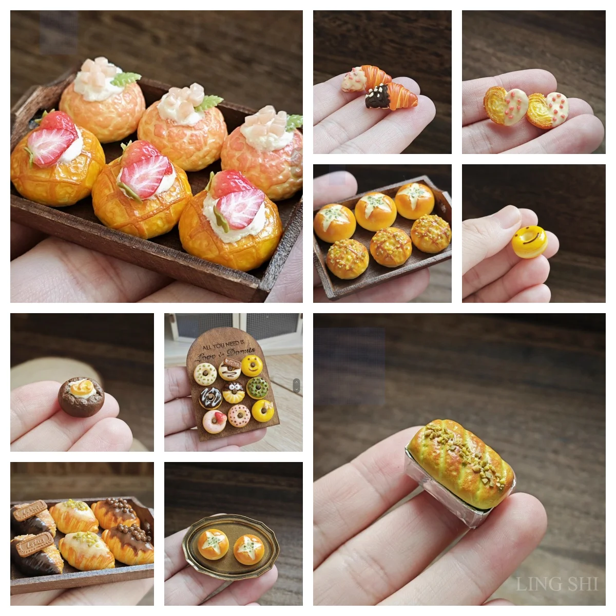 Modelo de pan de arcilla en miniatura para casa de muñecas, comida de imitación, decoraciones de juguete, oso, galleta, cachorro caliente, sándwich, Bjd, Snack, accesorios de escena de muñeca