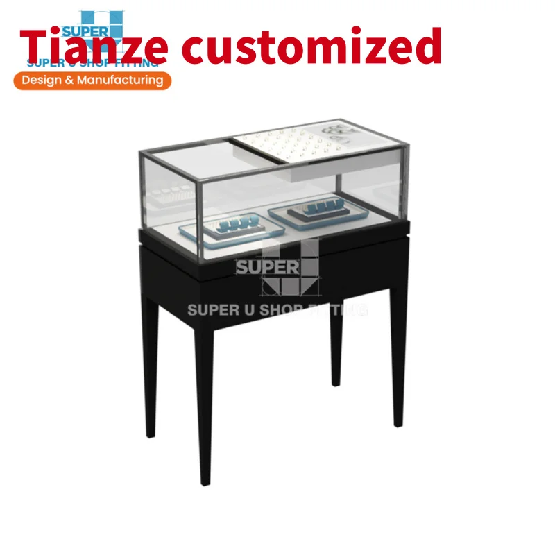 Mostrador de joyería de madera negra, mueble de mesa, vitrina de vidrio, diseño personalizado