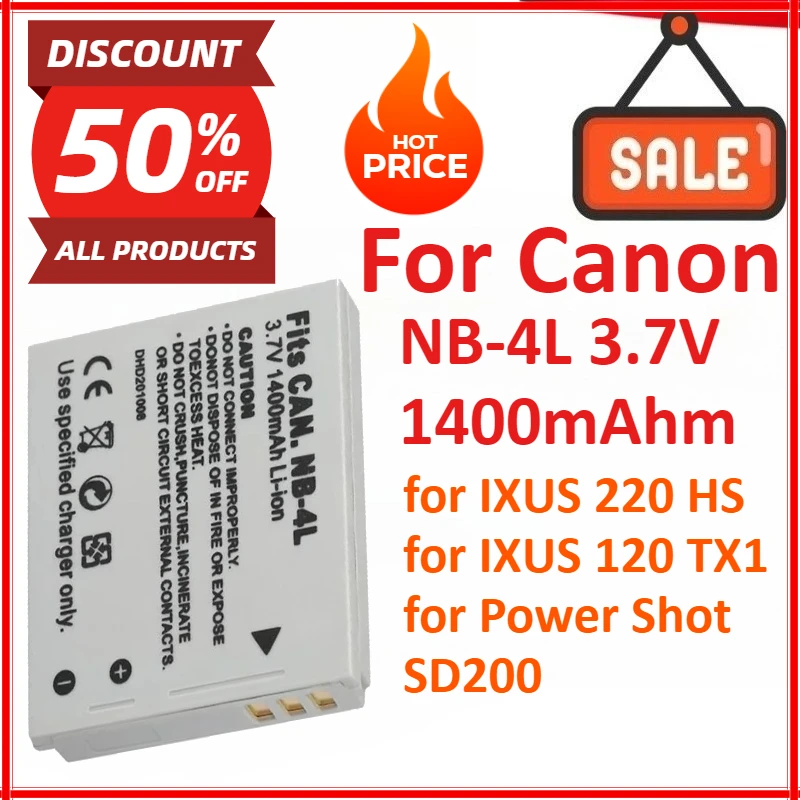 NB-4L 3,7 V 1400mAhm batería de litio para cámara Digital Canon IXUS 220 HS para IXUS 120 TX1 para toma de corriente SD200 de alta calidad