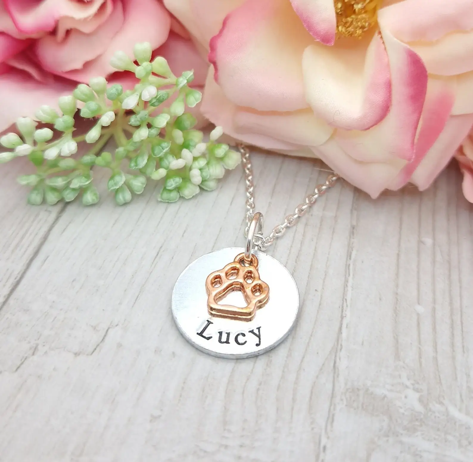 Nombre personalizado con pata, colgante redondo tallado personalizado, collar para pérdida de mascotas, regalo conmemorativo para perro, joyería para amigos y gatos, regalos para ella