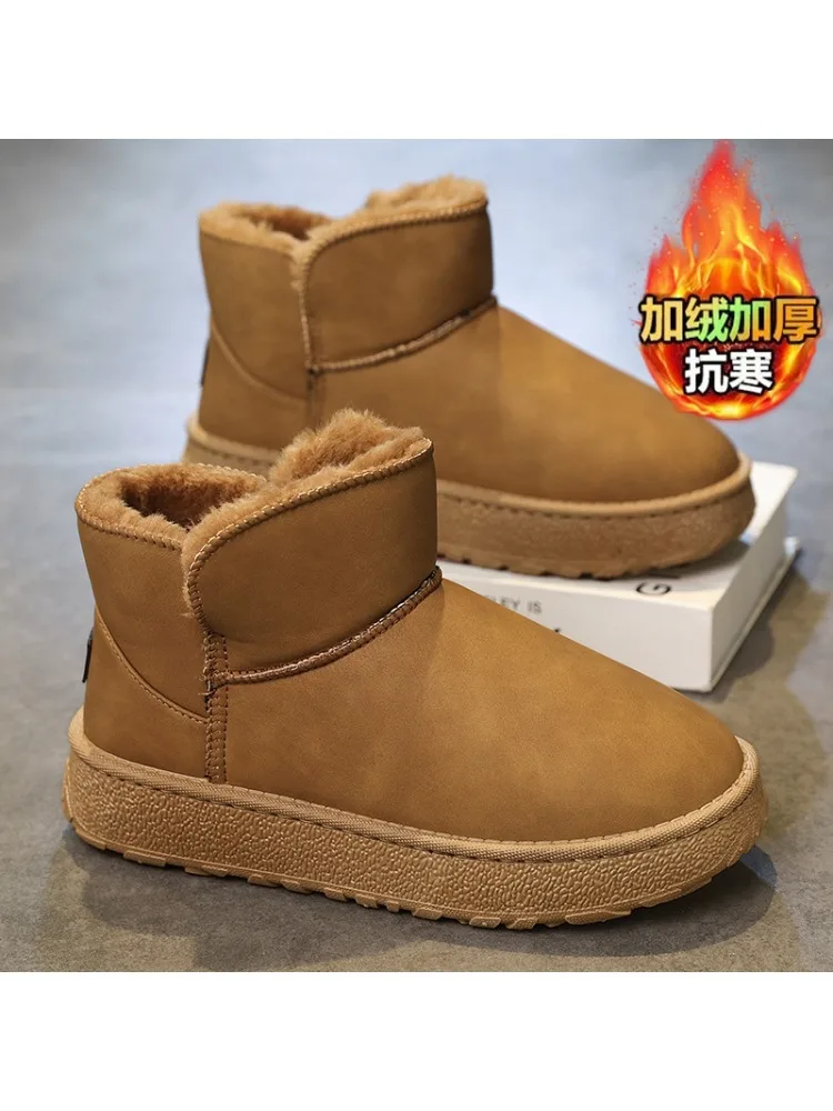 Nuevas botas de invierno con plataforma para cuero, botines cálidos de piel hasta el tobillo, botas de lujo, botas cálidas, botines cómodos antideslizantes