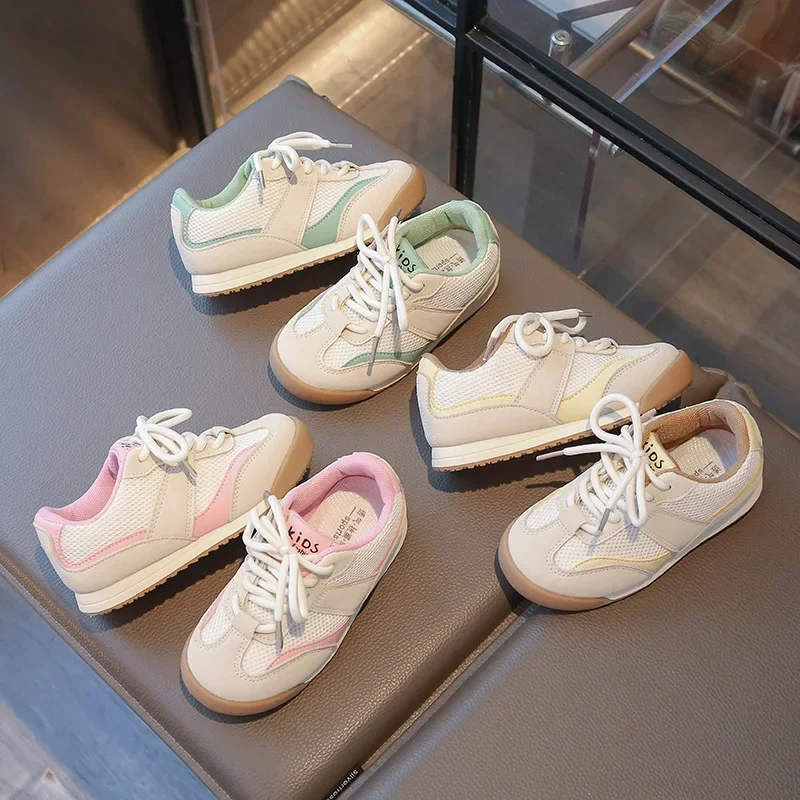 Nuevas zapatillas de deporte para niñas 2025 primavera otoño zapatos deportivos de malla para niños moda Patchwork transpirable tenis para niños zapatos casuales antideslizantes
