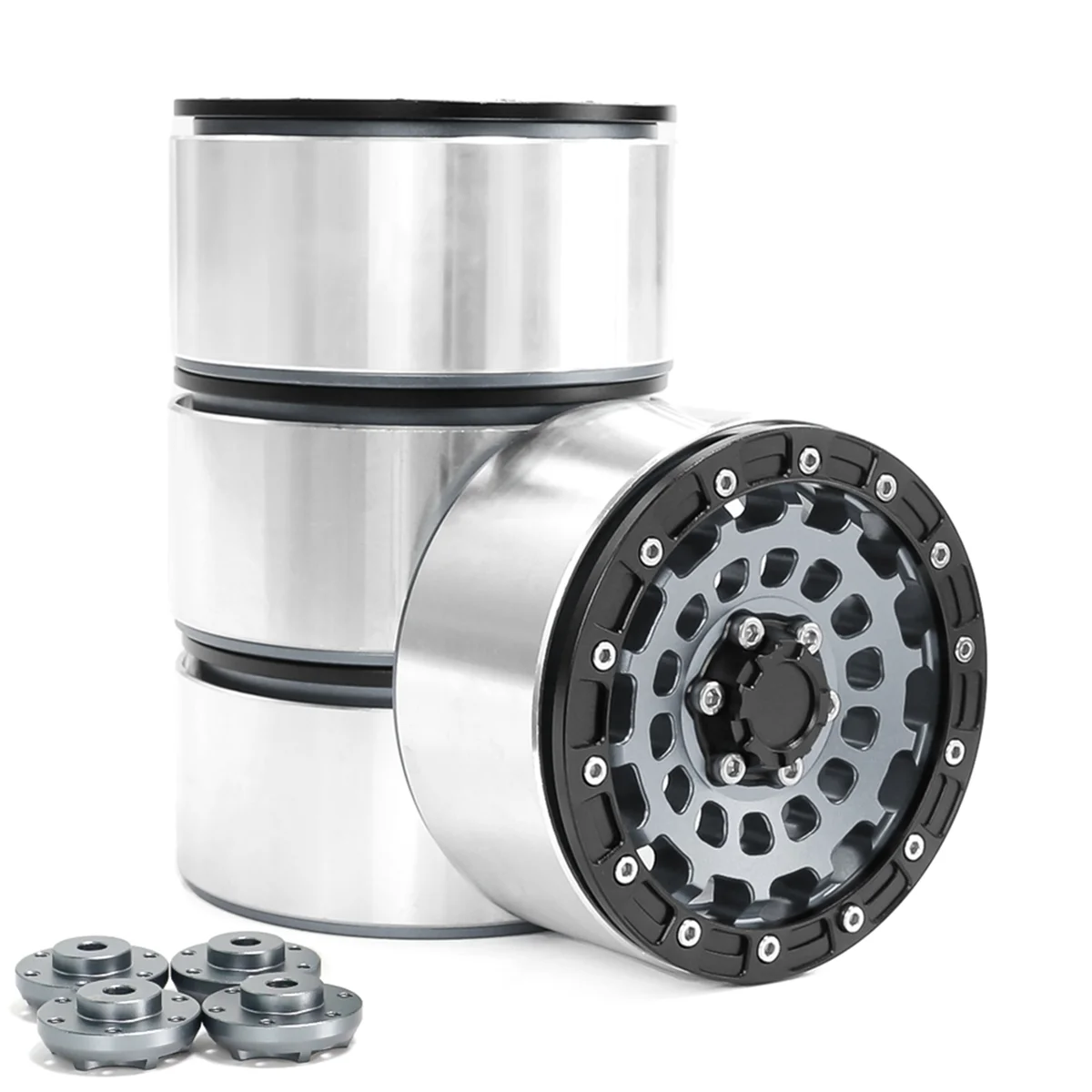 Nuevo: 4 Uds. Llanta de cubo de rueda Beadlock de aleación de aluminio de 2,6 pulgadas con combinador de 17mm y 12mm, piezas de mejora de coche trepador de control remoto, Color titanio