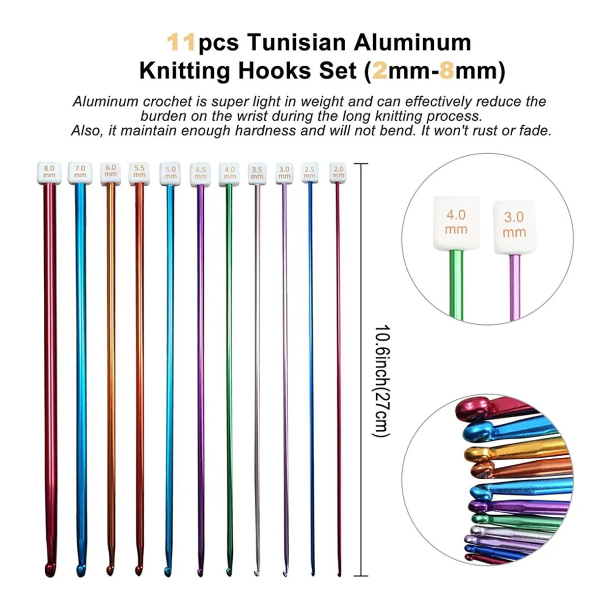 Nuevo juego de ganchos de ganchillo tunecino con estuche: 24 Uds. Juego de ganchos de bambú de ganchillo tunecino con Cable ganchos de aluminio de ganchillo afgano