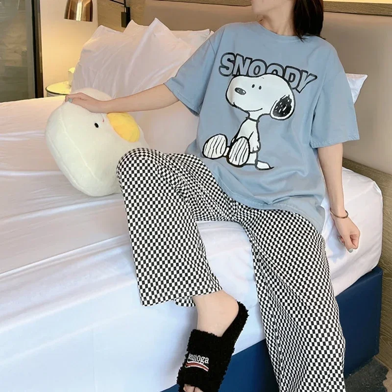 Nuevos pijamas de verano Snoopy, pantalones de manga corta para mujer, estilo de dibujos animados, estilo japonés para niña, dos conjuntos de ropa para el hogar