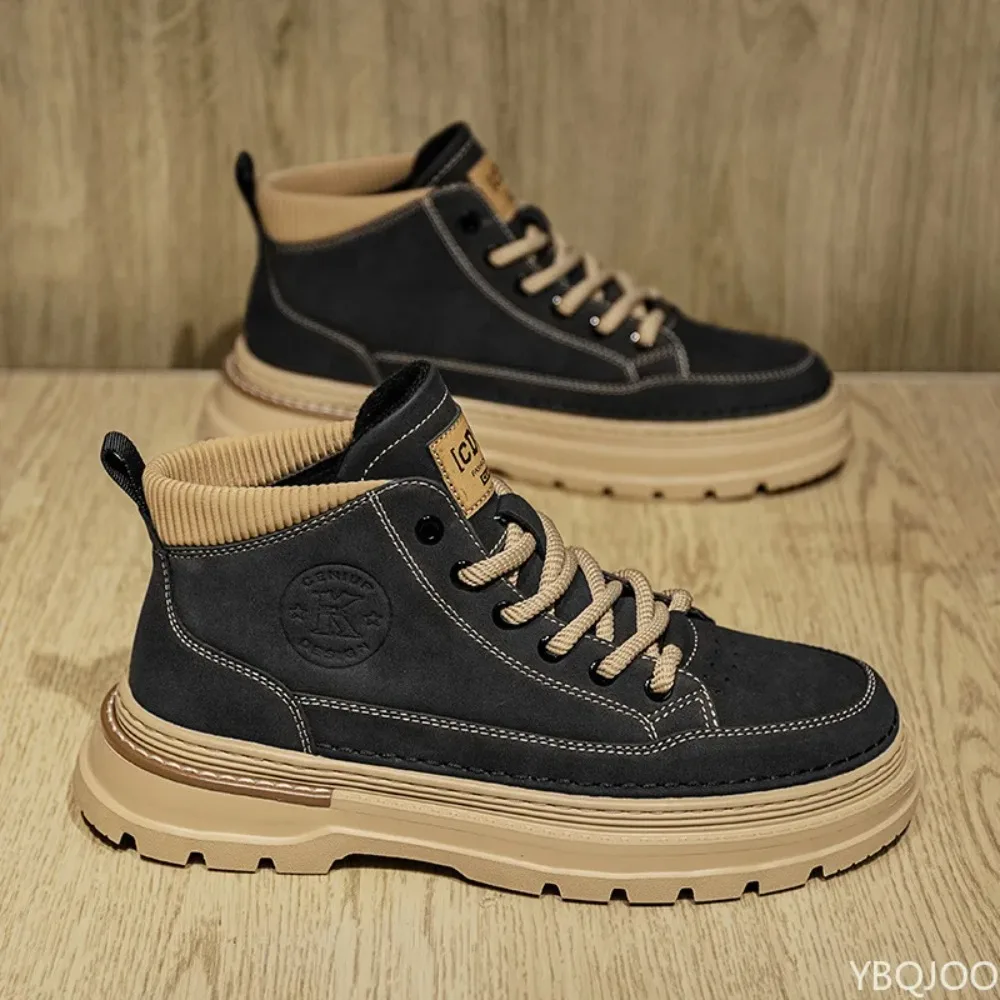 Nuevos zapatos informales retro transpirables para primavera y otoño para hombre, zapatos negros altos antideslizantes resistentes al desgaste, zapatos sencillos y cómodos para hombre