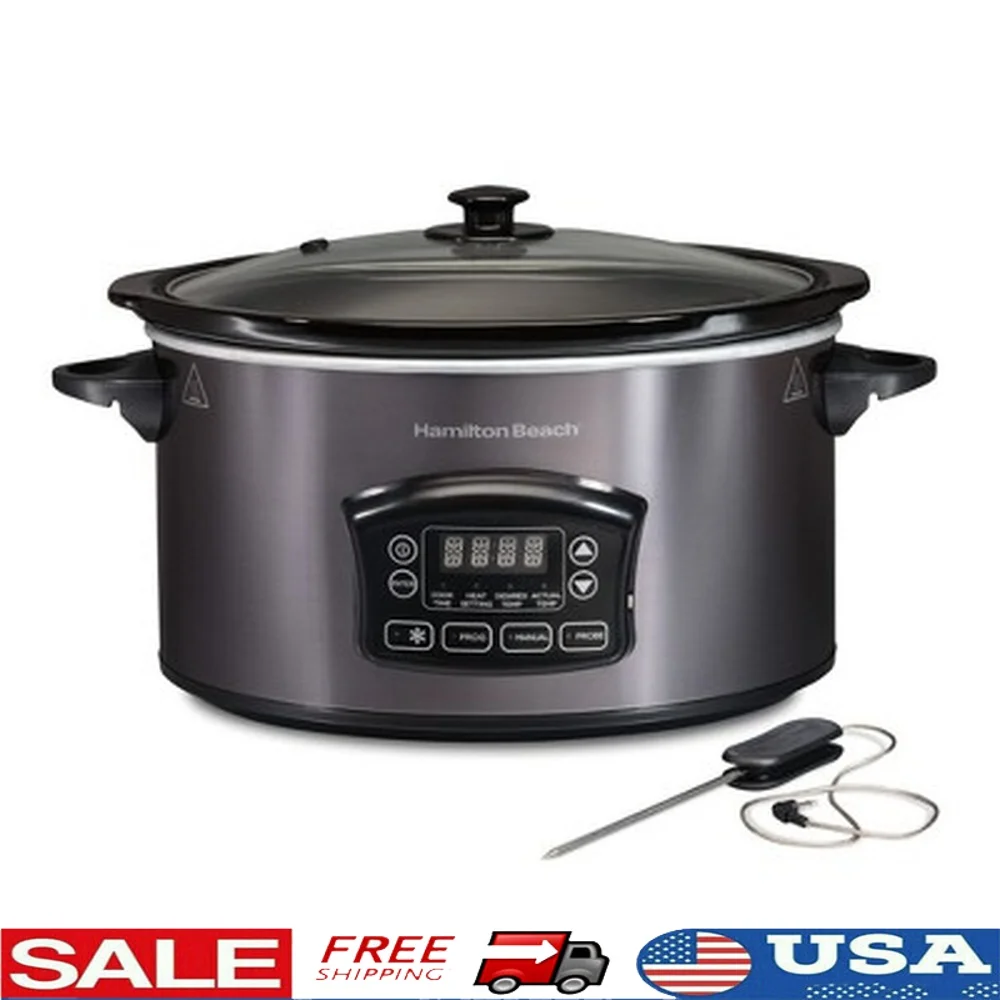 Olla de cocción lenta programable de 6 cuartos con sonda de temperatura, automática, mantiene el calor, descongelaciones, cocinas de carne congelada, tamaño familiar de forma segura 7 Plus