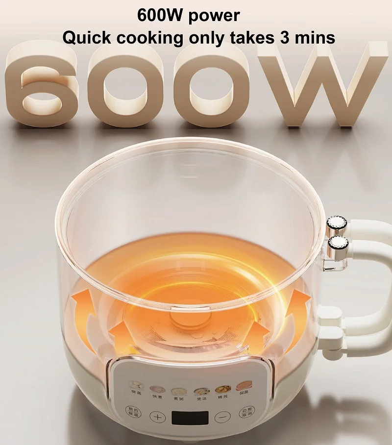 Olla de Cocina eléctrica de 1,6 l, Mini olla eléctrica para estofado, olla caliente para el hogar, olla de vapor, cita de 12h, olla de comida para bebés, multifuncional, 220V