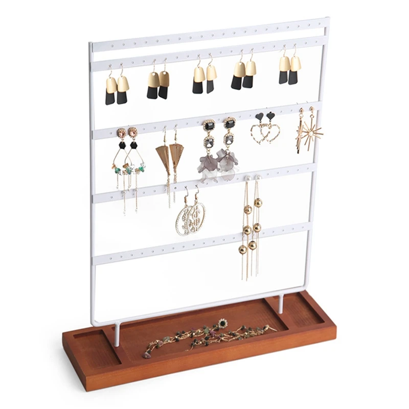 Organizador de pendientes de 5 capas, soporte de exhibición de pendientes, Base de madera, 100 agujeros