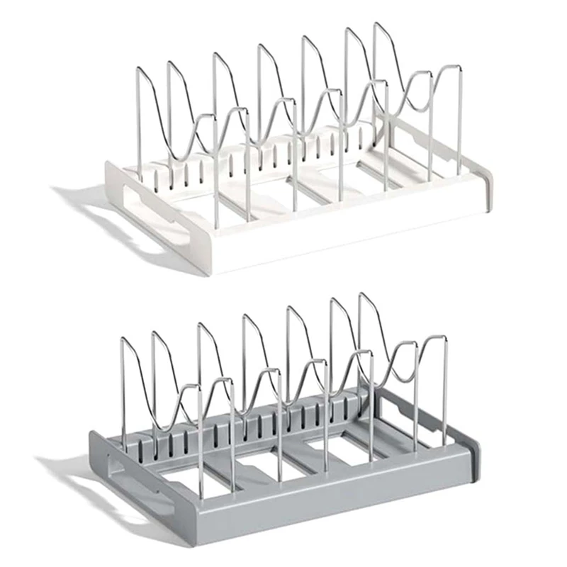 Organizador de tapas de sartenes y ollas expandibles, estante organizador de sartenes con paneles de goma para debajo del gabinete, organizador de gabinete de cocina B duradero