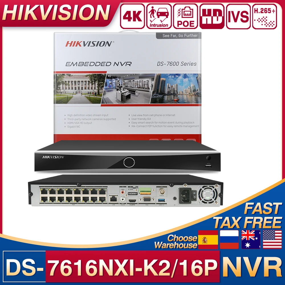 Original Hikvision 4K 16CH 16PoE AcuSense NVR DS-7616NXI-K2/16P reconocimiento Facial protección perimetral grabadora de vídeo en red