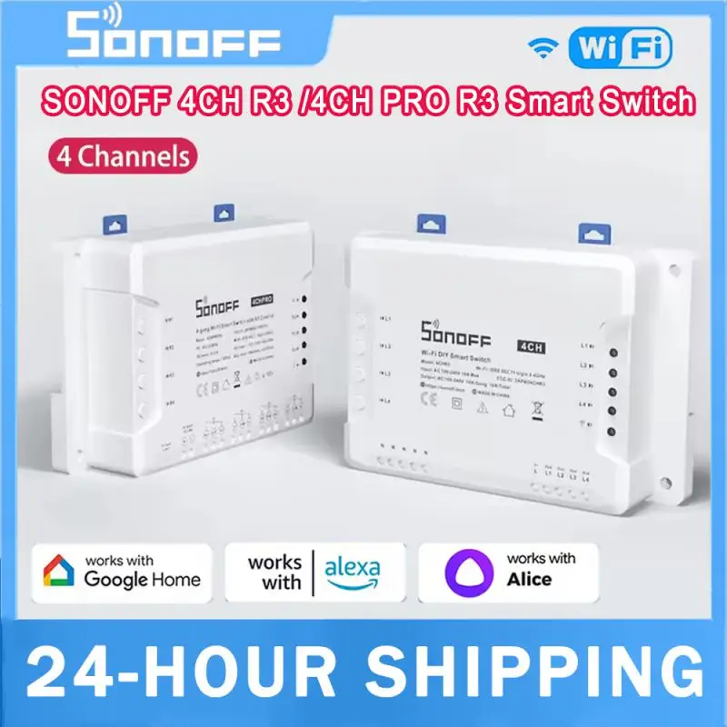 OriginalSonoff 4CH R3 PRO R3 interruptor inteligente DIY WiFI 4 canales montaje en carril Din soporte aplicación EWelink funciona con Alexa Google Home