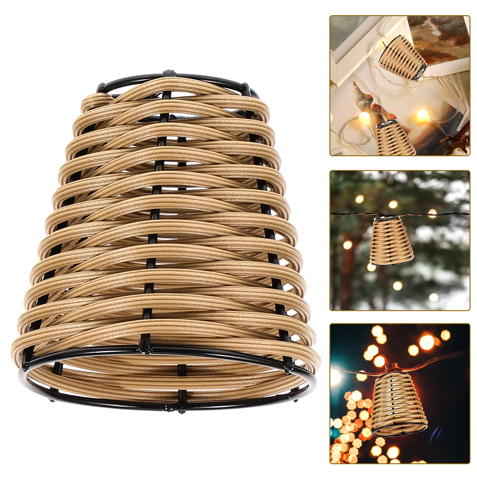 Pantalla de lámpara de ratán japonés, accesorios de iluminación de mesa pequeña DIY (marrón), decoraciones de oficina, Mini tejido de lino y bambú