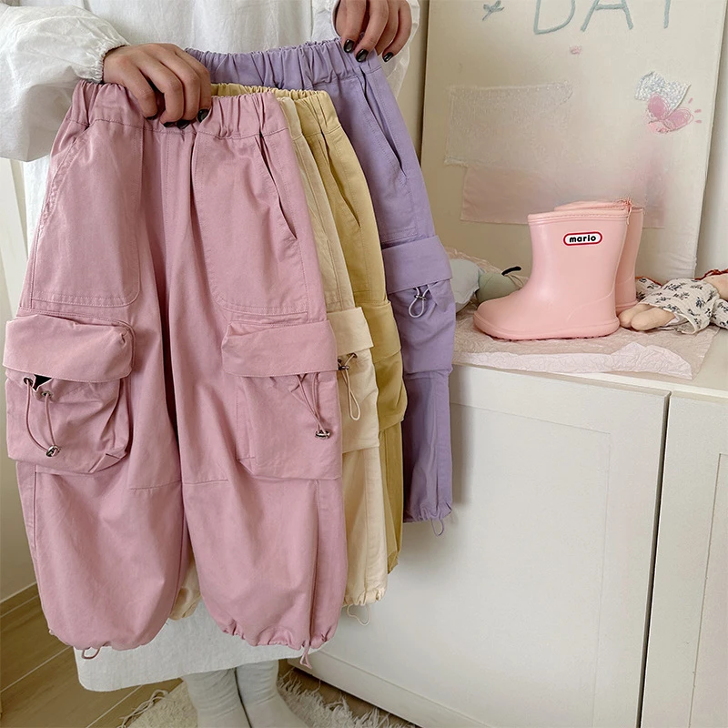 Pantalones de trabajo con bolsillo lateral para niña, informales, primavera y otoño, nueva tendencia, holgados y a la moda, 2025