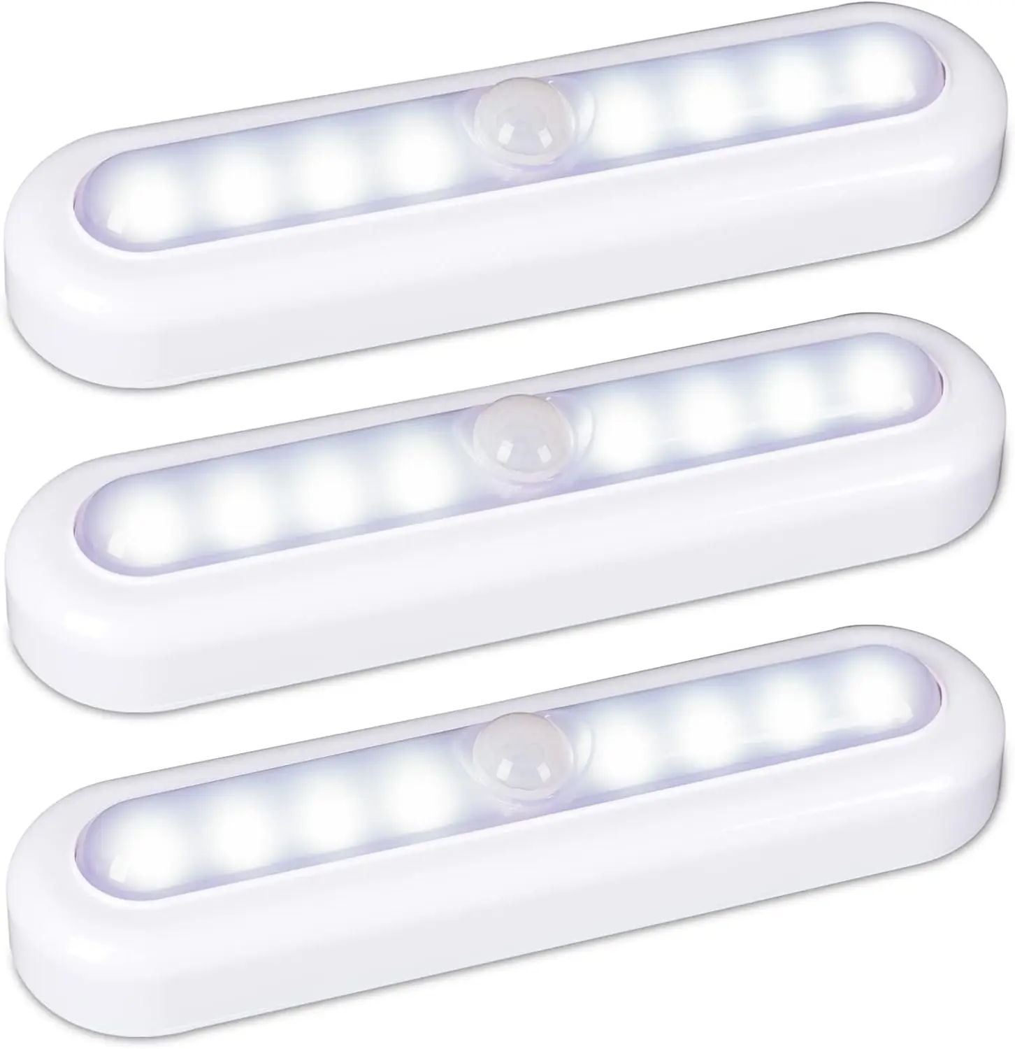 Paquete de 3 luces LED con sensor de movimiento, alimentadas por batería, adhesivas para armarios, escaleras y gabinetes, luz blanca fría