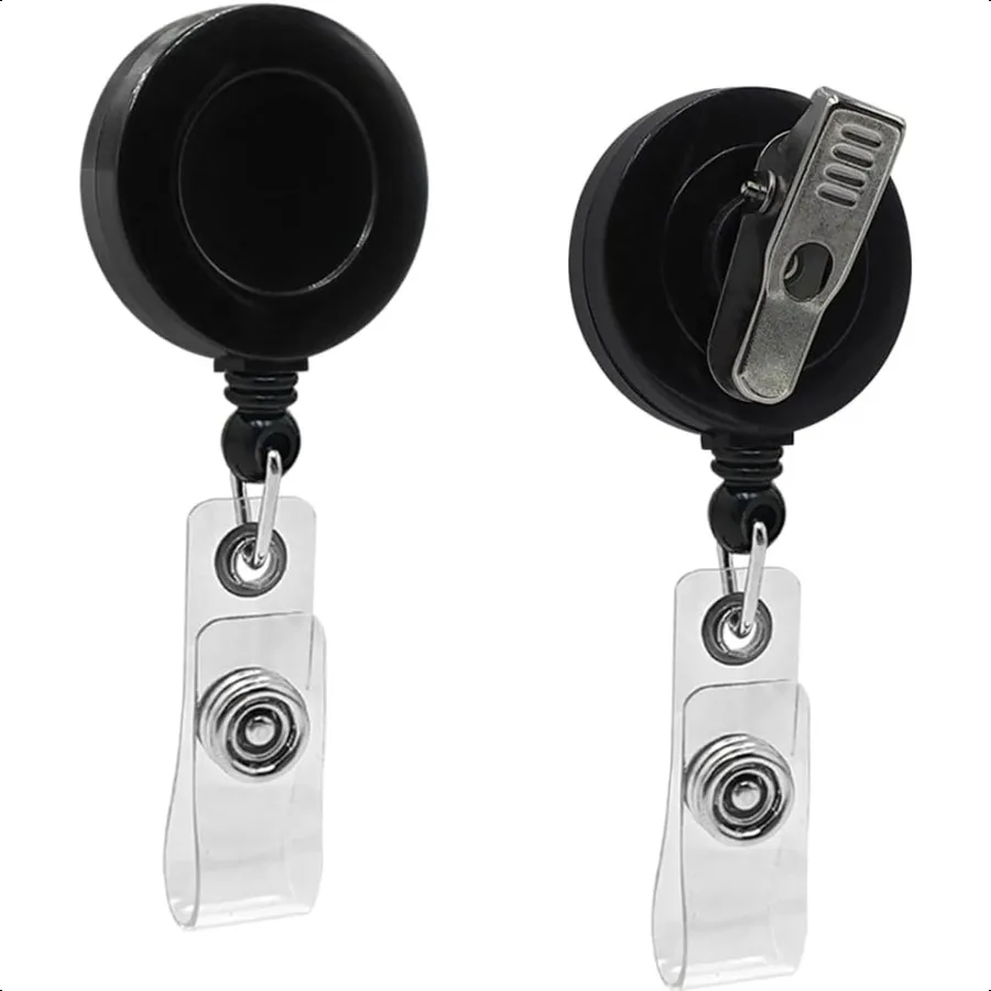 Paquete de 5 carretes retráctiles para tarjetas de identificación con clip de cocodrilo giratorio, paquete a granel, insignia premium negra