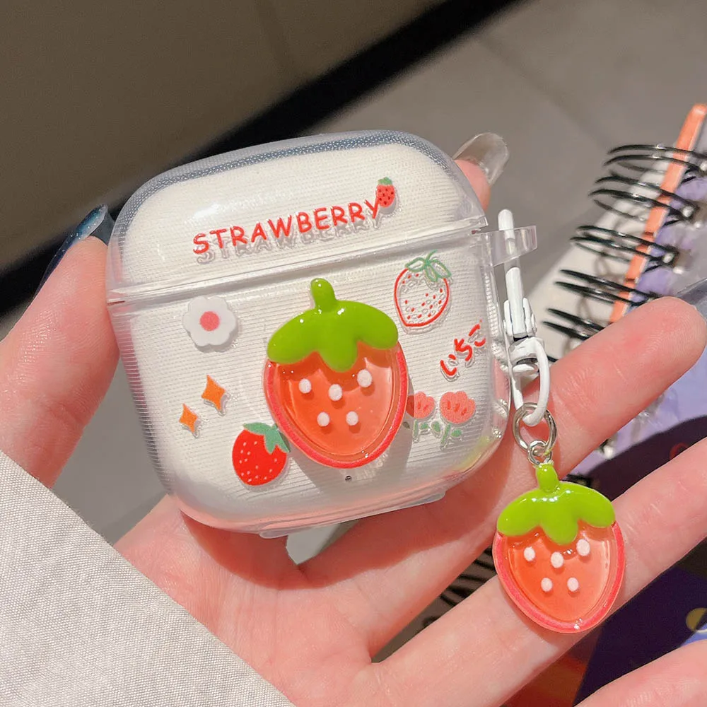 Para Huawei FreeBuds 5 5i 6i 4 SE 2 SE2 funda 3D flores de sandía transparente dibujos animados auriculares caja de carga accesorios cubierta colgante