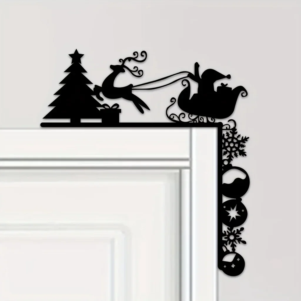 Pegatinas de pared decorativas de trineo de Metal, decoración de esquina de puerta de Navidad, arte de marco festivo, colgante de pared de Metal para fiestas