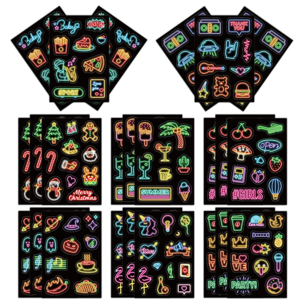 Pegatinas originales de neón para el cuello, adhesivos bonitos de dibujos animados para el manual, funda de teléfono, decoración de escritorio para Notebook, pegatinas impermeables, 8 piezas