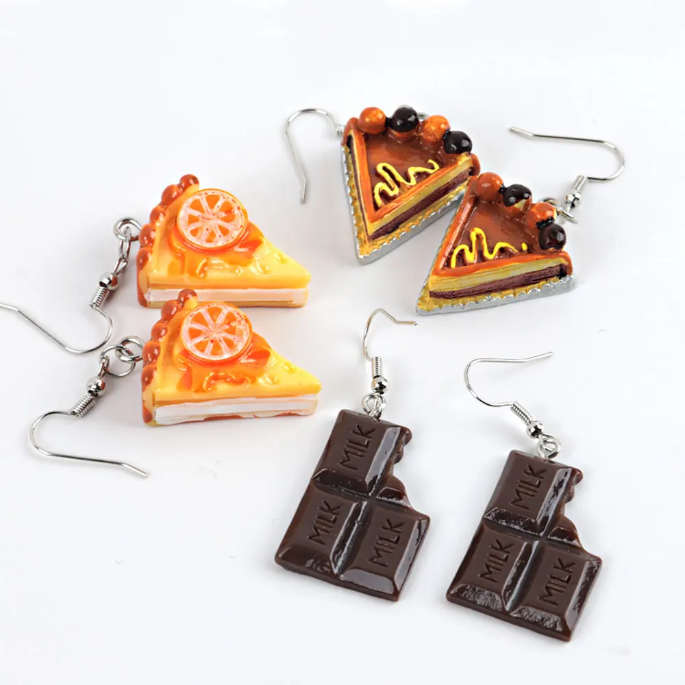 Pendientes colgantes con forma de pastel de Chocolate para mujer y niña, aretes colgantes con forma geométrica de comida, Donuts, galletas, joyería de fiesta
