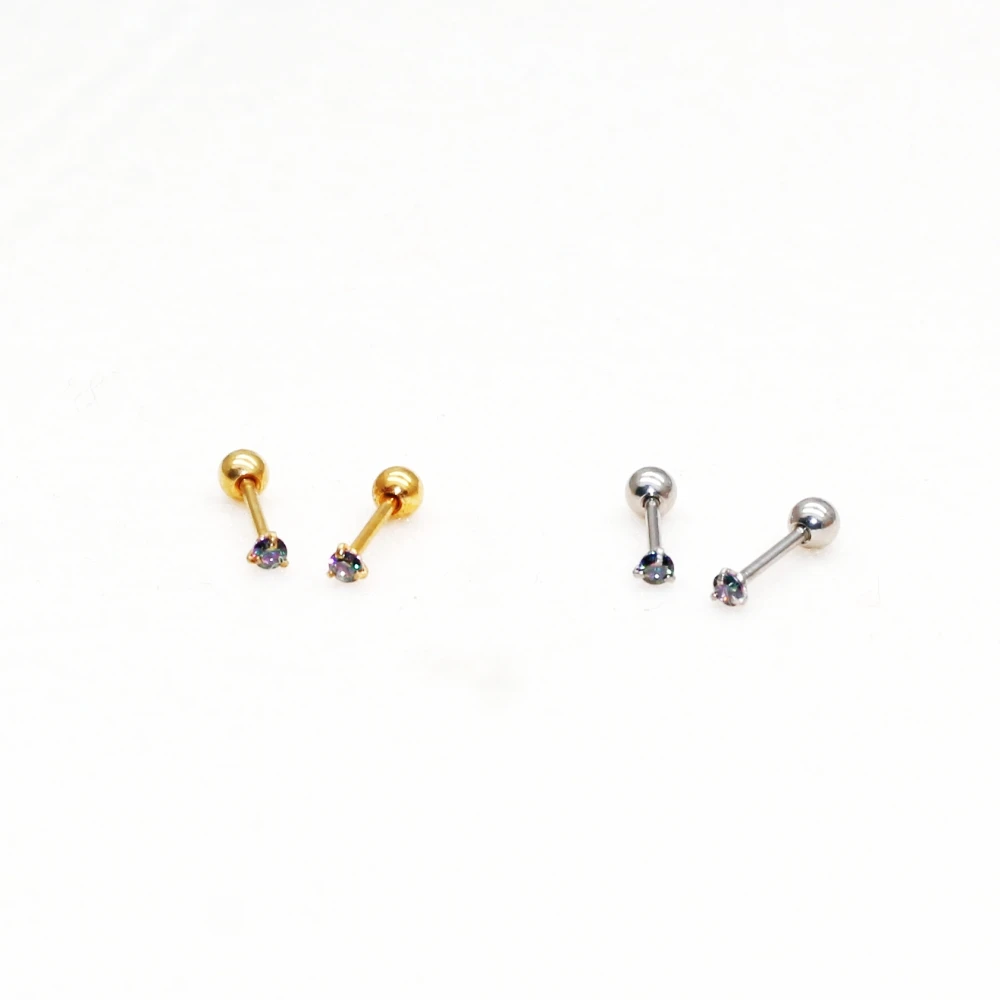 Pendientes de tuerca con parte trasera de tornillo de acero inoxidable de 20G con Super Mini pendiente de circonitas de colores de 2mm chapado en IP sin alergias