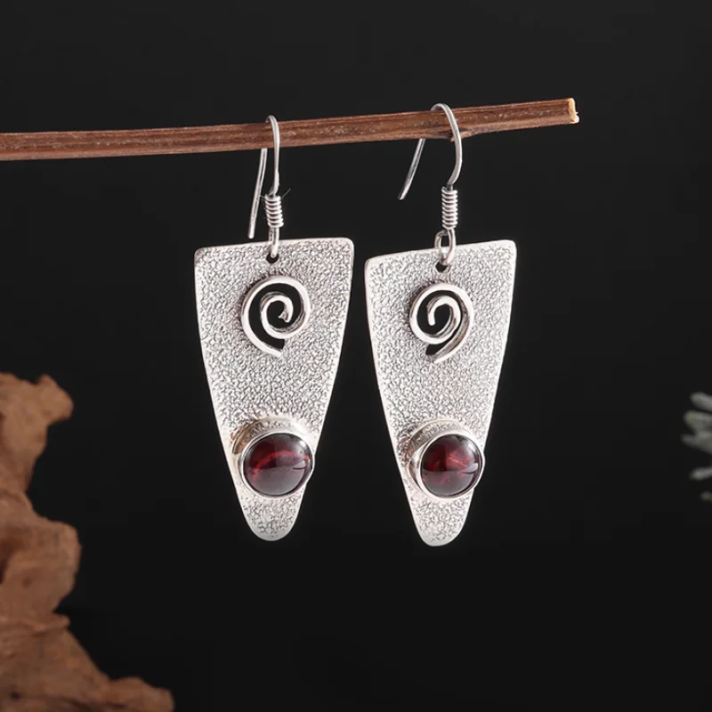 Pendientes en espiral geométricos bohemios Retro con incrustaciones de circonita roja, colgantes para mujer, accesorios de joyería para banquetes de moda