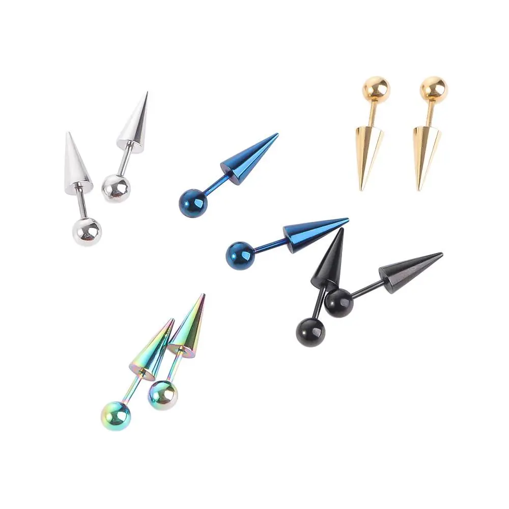 Pendientes góticos con punta de cono y bola redonda para hombre, Piercing de acero de titanio, joyería de moda