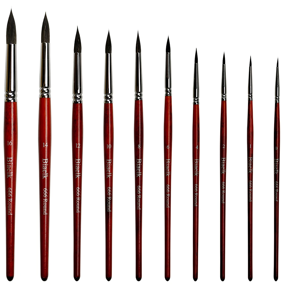Pincel de pintura con mango de madera de ardilla redonda, suministros de herramientas de arte de artista acrílico de acuarela, alta calidad, 666, 10 unidades