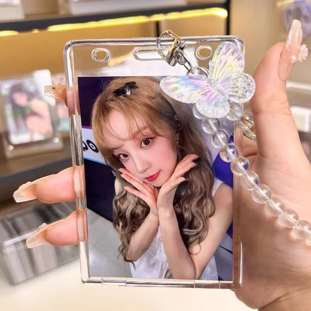 Portatarjetas de mariposa de cristal, portatarjetas de identificación transparente de acrílico, llavero para tarjetas fotográficas, para estudiantes, tarjetas de crédito, oficina, escuela