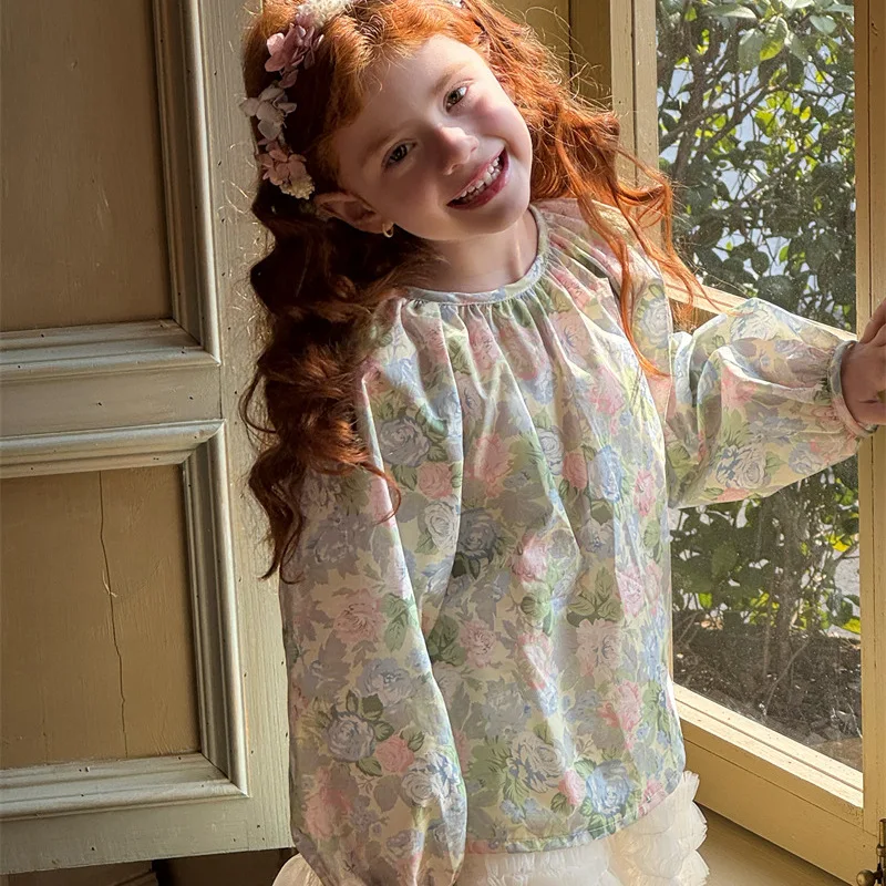 Primavera y verano, camisa pastoral floral para niña, camiseta de muñeca de manga larga para niña