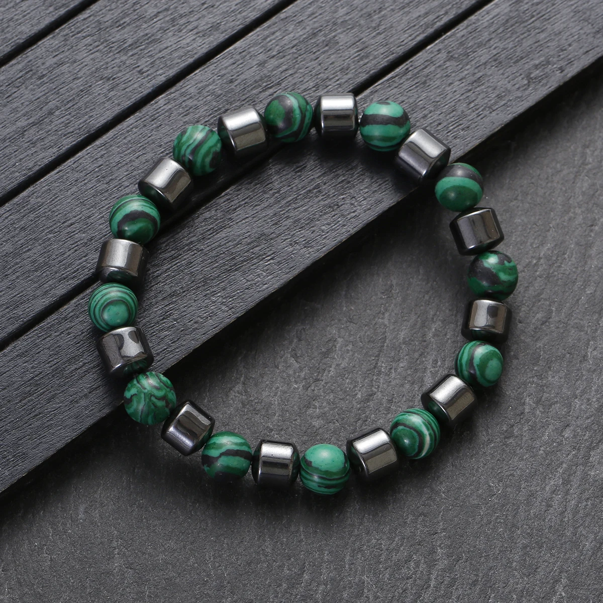 Pulsera de piedra de malaquita verde Natural para hombres y mujeres, joyería curativa de hematita hecha a mano, pulseras de cuentas, pulsera de Yoga de energía