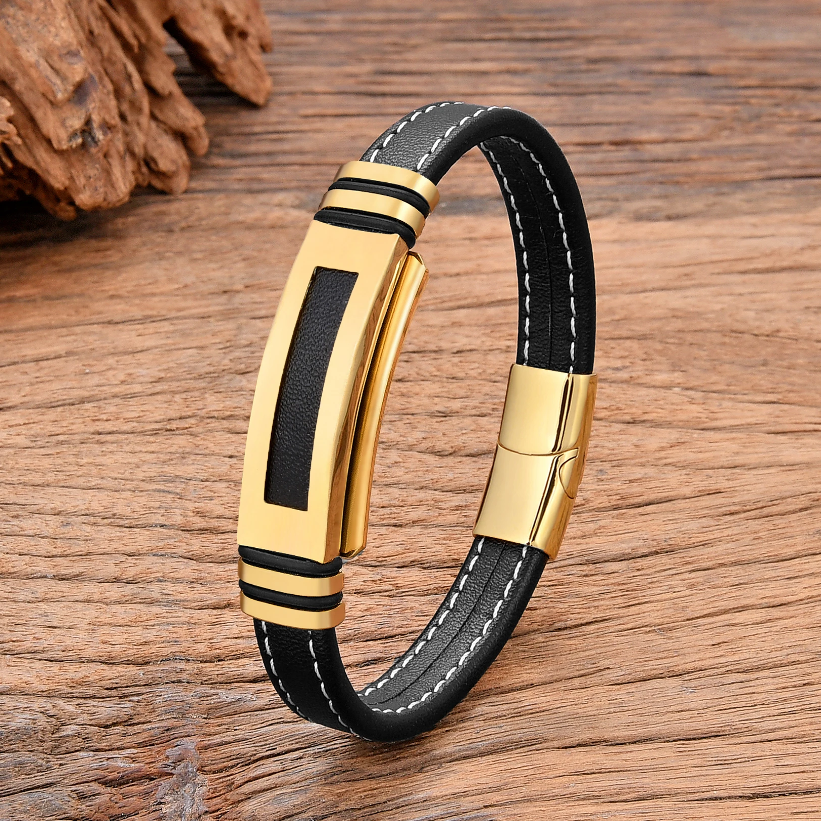 Pulsera hueca de acero inoxidable para hombre, accesorios de joyería de alta calidad, cuerda de cuero trenzado negro, estilo Hip Hop, nuevo, 2024