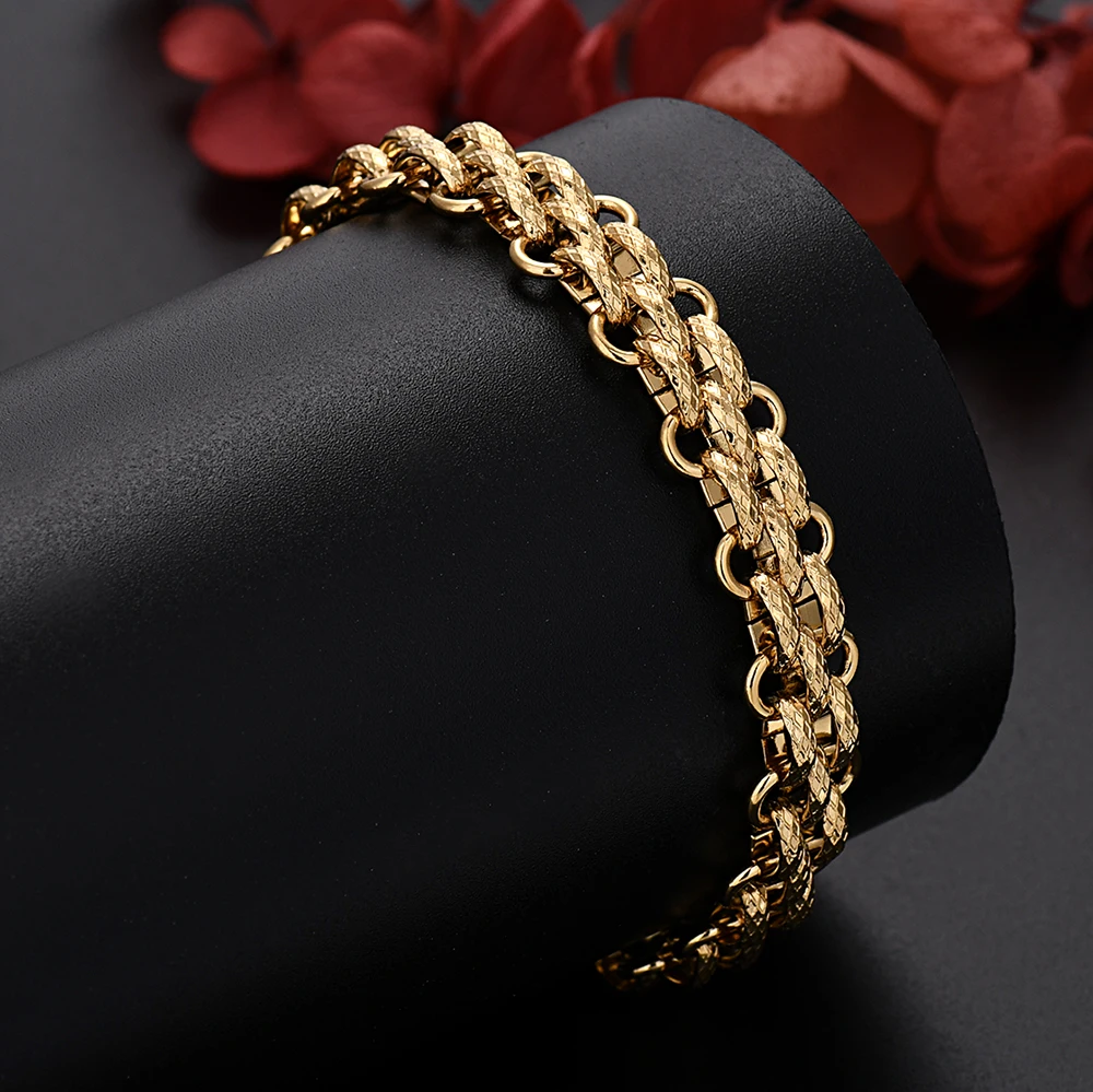 Pulseras de cadena de color dorado de 18K para hombres y mujeres, dijes personalizados de diseñador Original, fiesta de boda, regalos de Navidad, joyería de moda, 21cm