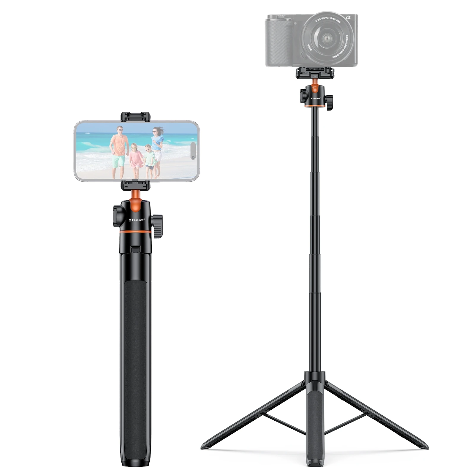 PULUZ-trípode para palo de Selfie para teléfono, 1,4 m, soporte para transmisión en vivo Vlog con Clip para teléfono y tornillo de 1/4 para trípode de cámara para teléfono inteligente