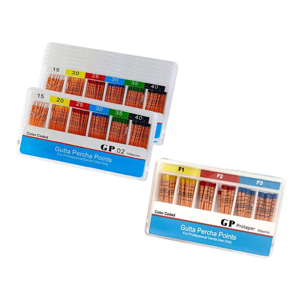 Puntos de gutapercha dental desechables GP 02/04/06/F # Palo cónico de relleno Endo del conducto radicular del dentista de las puntas de la fibra cónica 15-40 con la escala