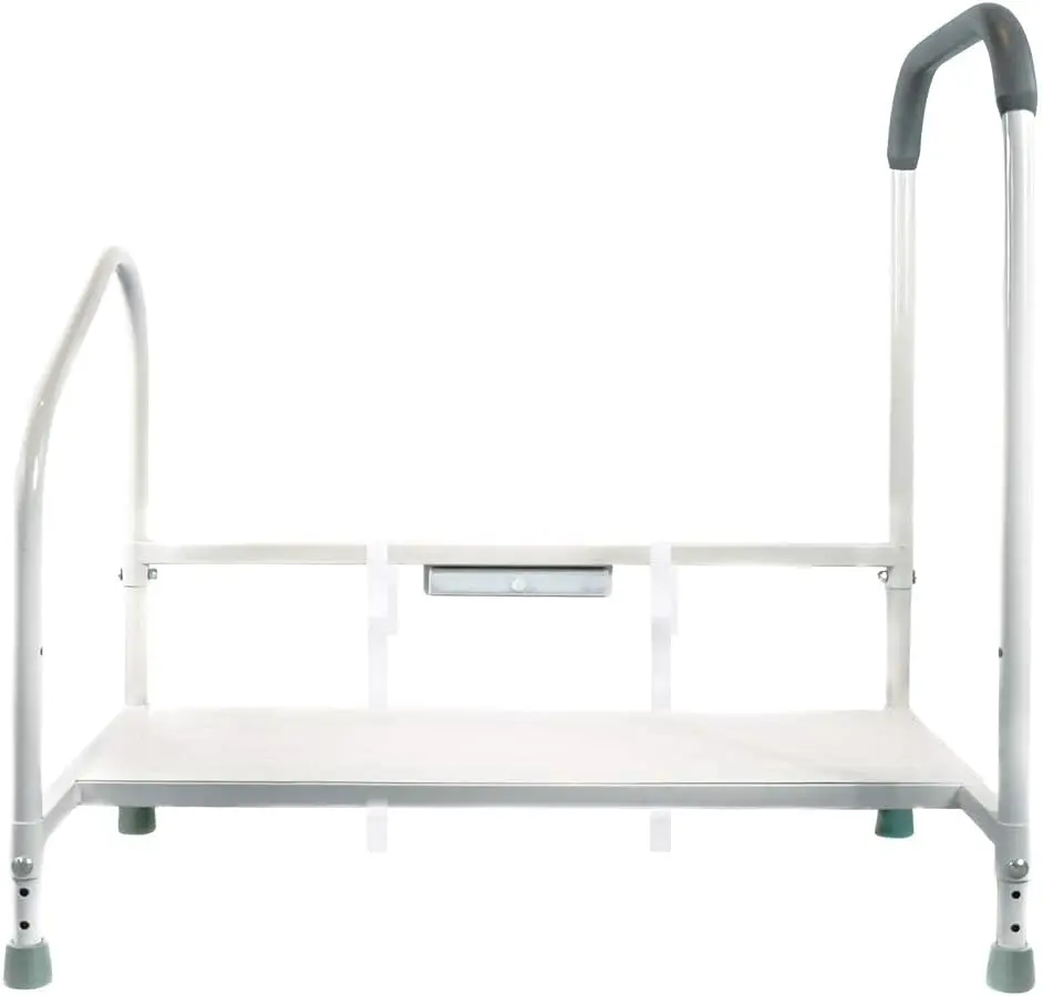 Rieles de cama de lujo para adultos mayores: riel de seguridad para cama de altura ajustable para personas mayores con soporte para bastón, luz LED, malla